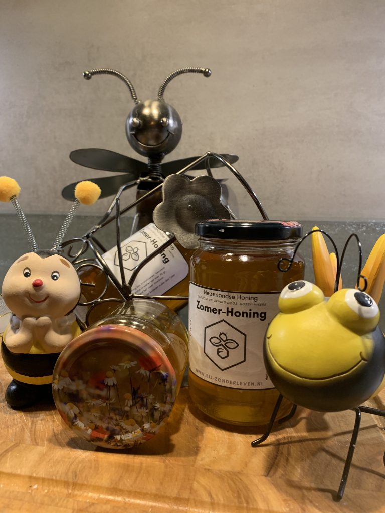 Er zijn nog potten honing van 250 gram en van 450 gram.